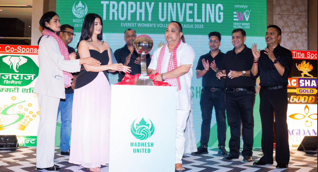 वीरगंज – मधेश स्पोट्र्स प्रा.लि. को आयोजनामा पोखरामा हुन लागेको वत्सालय एभरेस्ट महिला भलिबल लिगको दोस्रो संस्करणको ट्रफी वीरगंजमा भव्य समारोहबीच अनावरण गरिएको छ ।