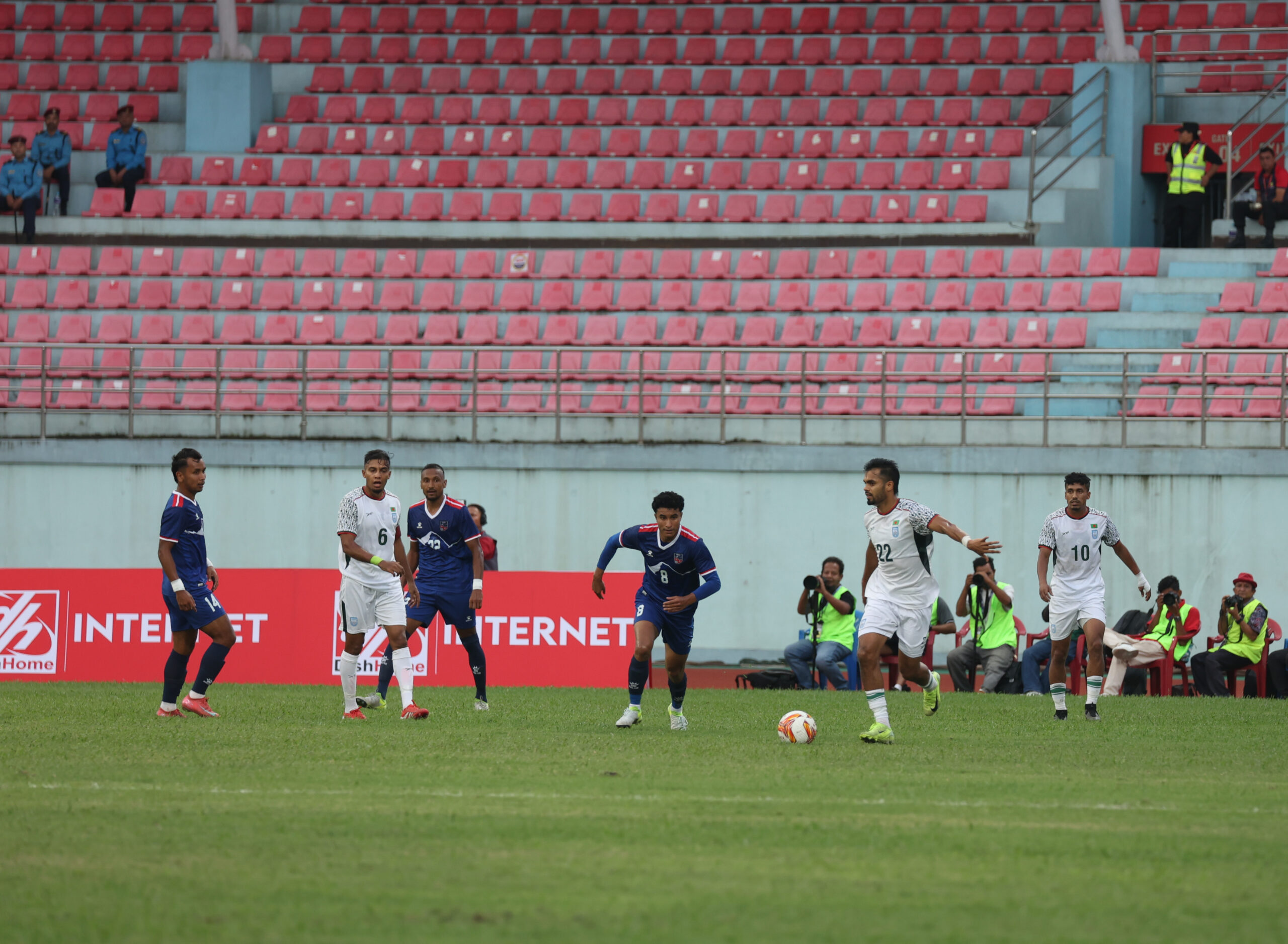 काठमाडौं – दुई वर्षपछि घरेलु रंगशालामा फर्किएको नेपाली राष्ट्रिय फुटबल टोलीले अन्तर्राष्ट्रिय फुटबलमा जितसहितको पुनरागमन गर्न सकेन। शनिबार त्रिपुरेश्वरस्थित दशरथ रंगशालामा भएको मैत्रीपूर्ण खेलमा नेपाल र बंगलादेश गोलरहित बराबरीमा रोकिए।