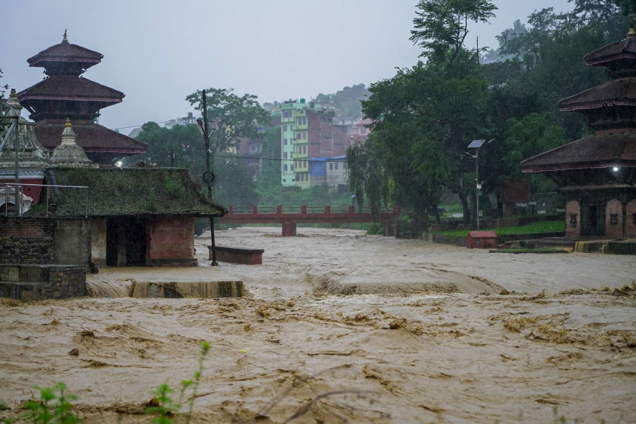 ऐतिहासिक, सांस्कृतिक एवम पुरातात्विक महत्व बोकेको काभ्रे पनौतीको त्रिवेणीघाट बाढीको चपेटामा परेको छ । शुक्रबारदेखि अविरल रुपमा भइरहेको बर्षाका कारण त्रिवेणीघाट डुबानमा परेको हो । घाटमा रहेका ब्रह्मायणी मन्दिर र इन्द्रेश्वर महादेव मन्दिर बाढीको चपेटमा परेका हुन् । तस्विरहरू : बिजेन अमात्य/ नेपाल न्यूज बैंक