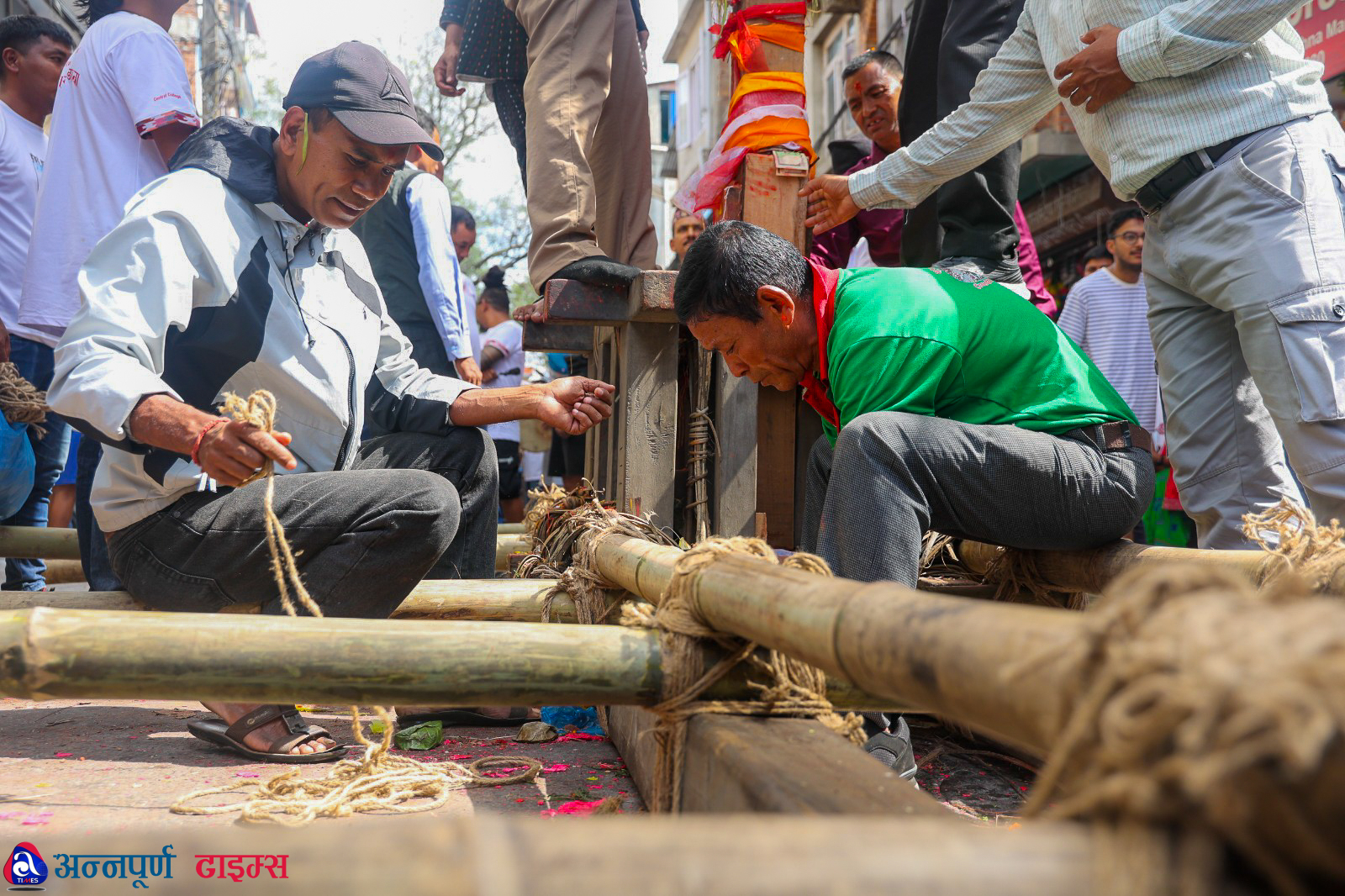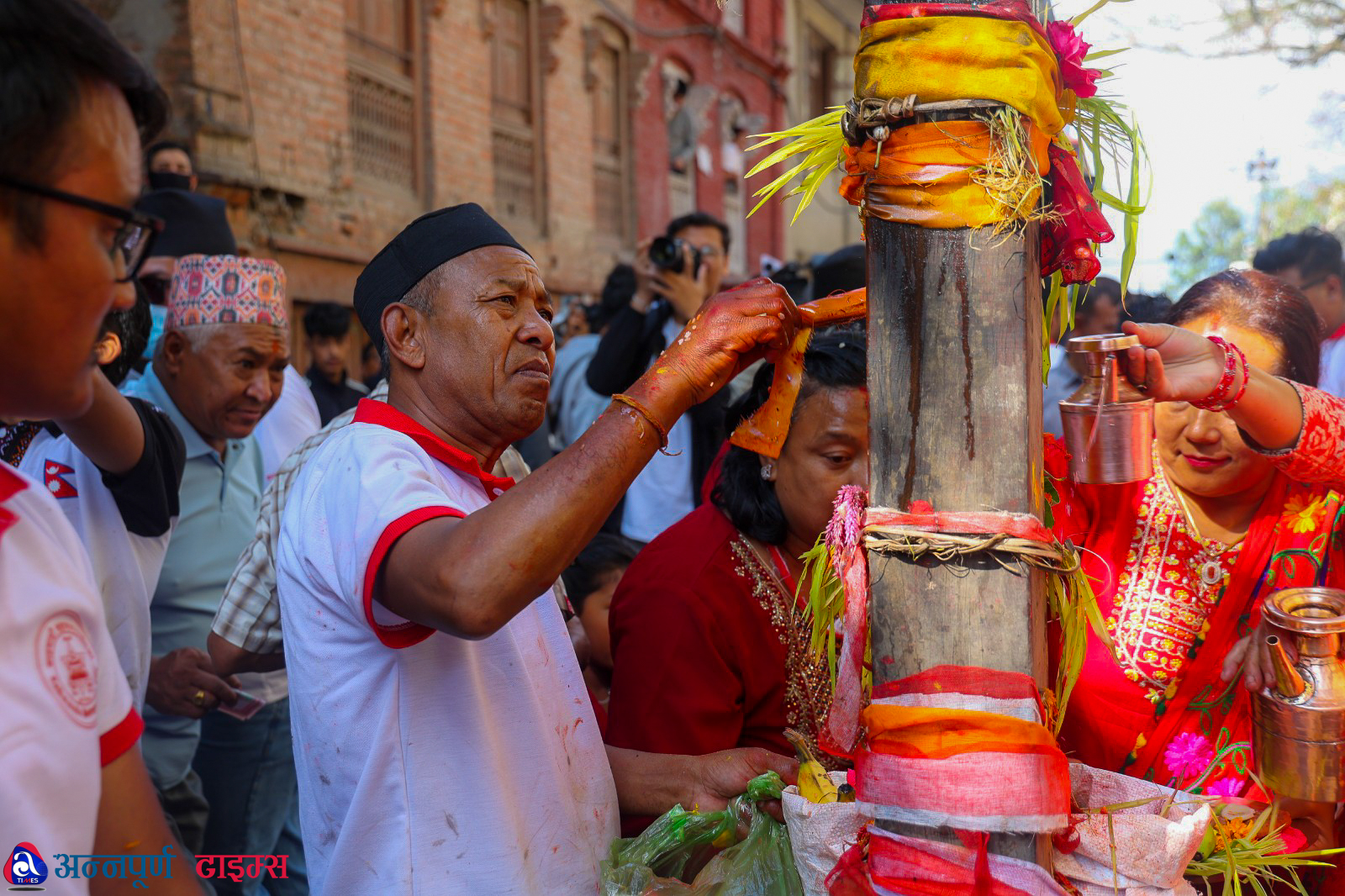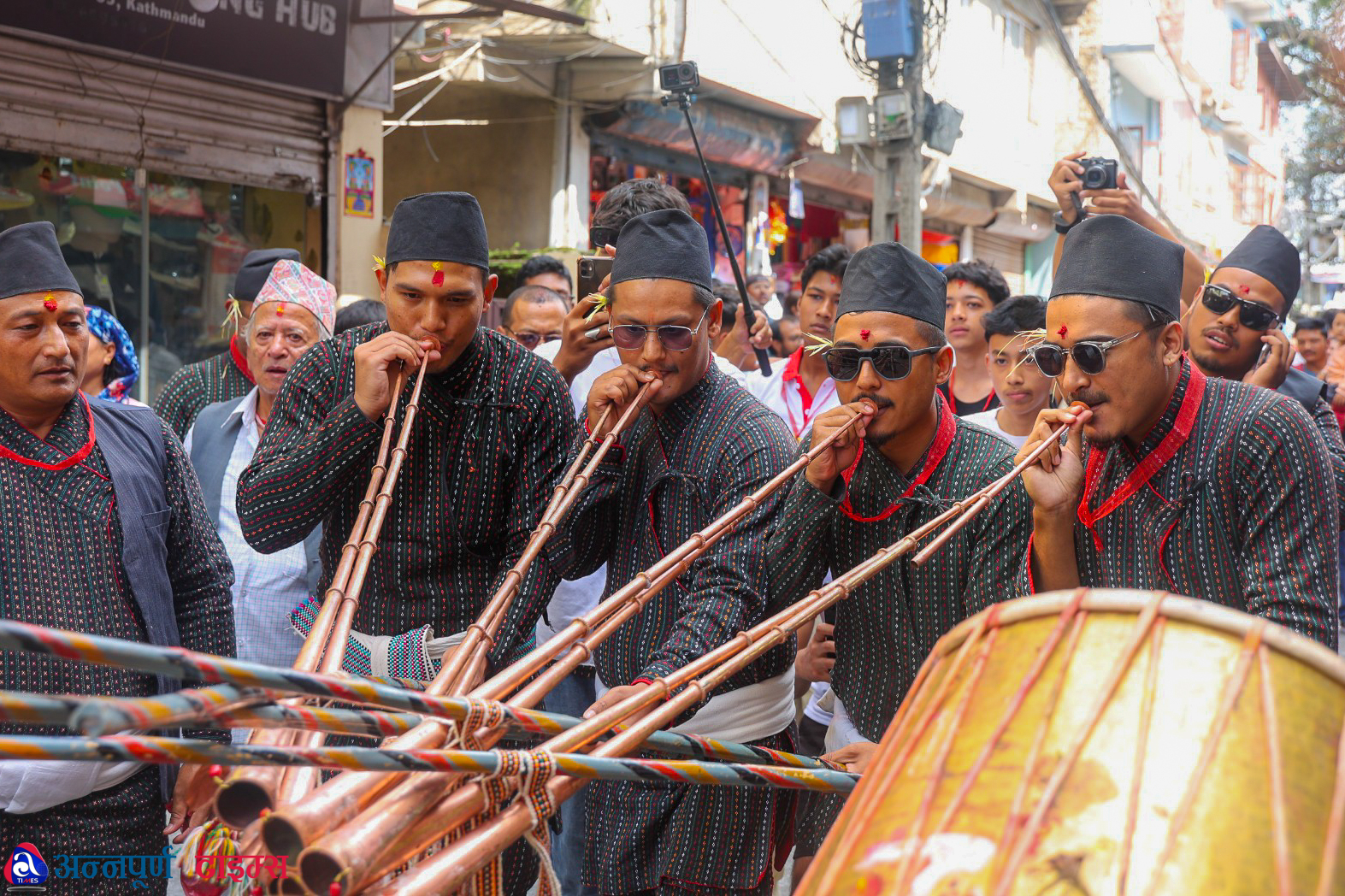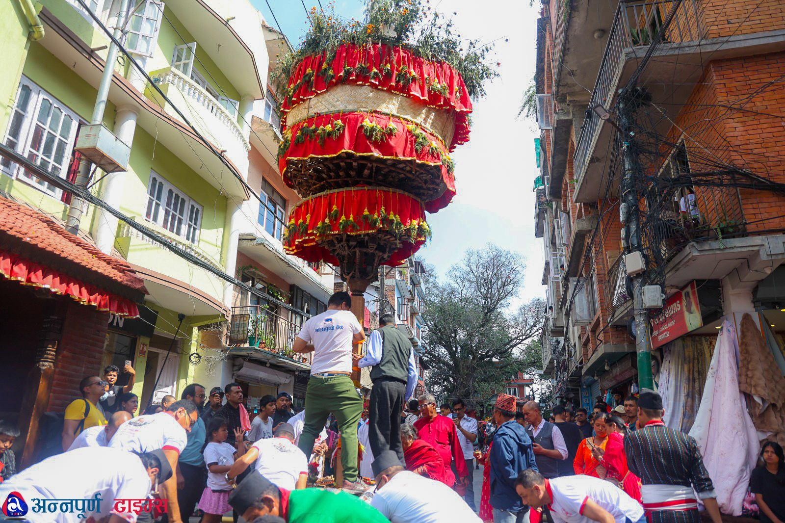 परम्पराअनुसार, पूर्णिमाको दिन साँझ देवतालाई मन्दिरबाट निकालेर आँगनमा राखी भक्तजनलाई दर्शन गराउने र आज (प्रतिपदा) का दिन तीनवटा रथमा विराजमान गराई हाडीगाउँ परिक्रमा गराउने प्रचलन छ।
