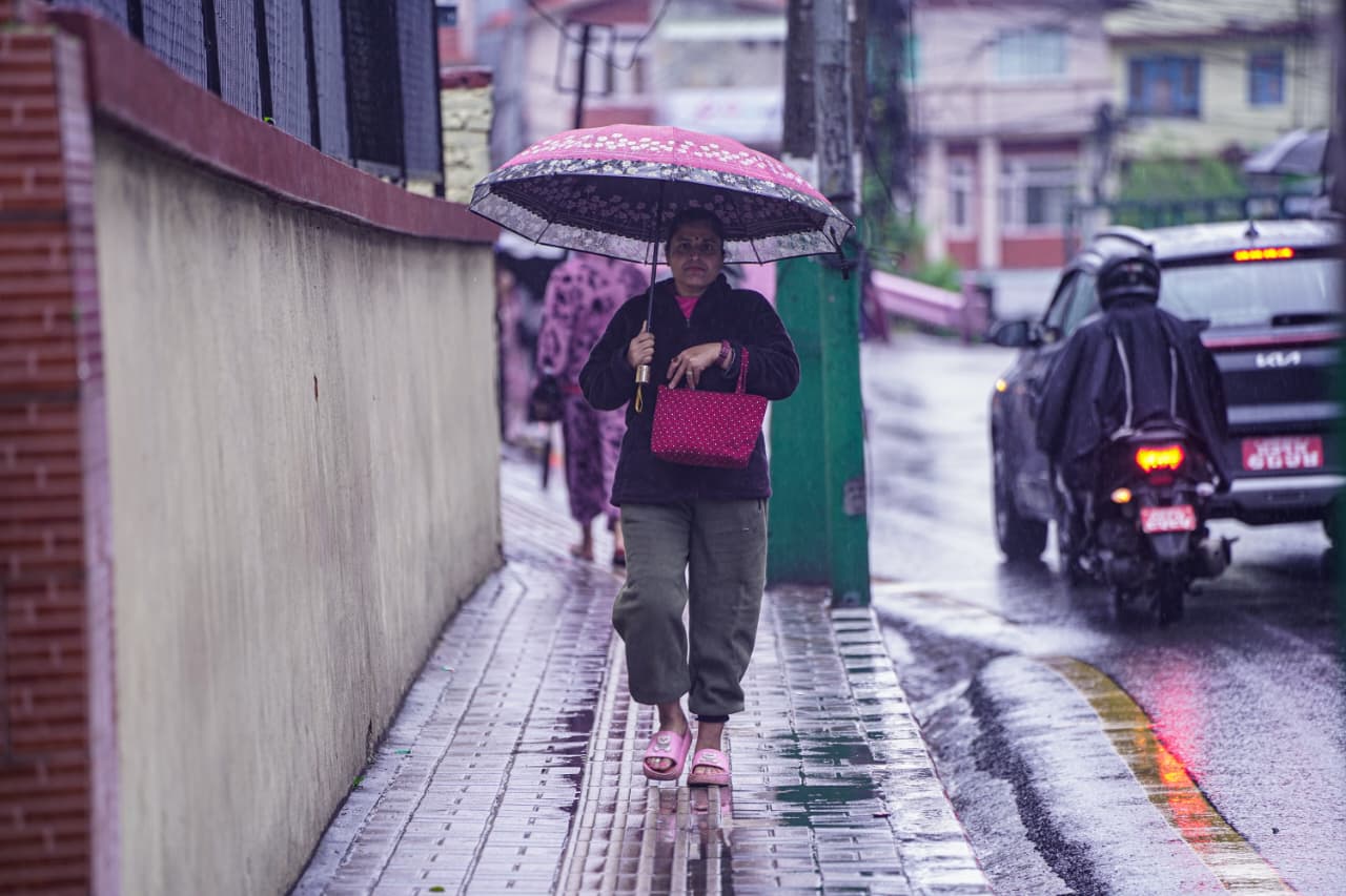 काठमाडौं उपत्यकासहित देशका विभिन्न ठाउँमा बिहीबारदेखि लगातार वर्षा भईरहेको छ । वर्षासँगै आम नागरिकको जनजीवन प्रभावित बनेको छ । काममा जादै गरेका, विद्यालय जार्दै गरेका क्याम्पसबाट अध्ययन सकेर घर फर्किरहेका विद्यार्थी, एवं व्यापार व्यवसायी तथा पर्यटक वर्षाका कारण प्रभावित बनेका छन् । पानी परेपनि छाताको सहारामा आफ्नो दैनिकी चलाइरहेका छन् ।