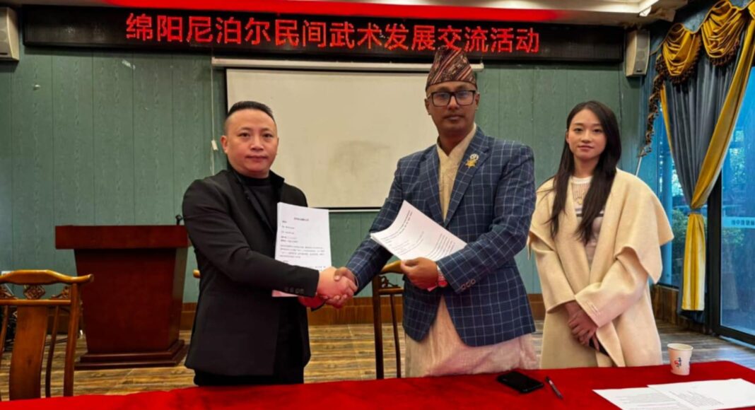 काठमाडौं – मित्रराष्ट्र चीनको सिचुवान प्रान्तस्थित मिनयाँङ उसु संघ, मार्सल आर्ट अर्गनाइजेसन नेपाल र काठमाडौं जेन्जी ट्रेडिसनल आर्चरी एण्ड मार्सल आर्ट अर्गनाइजेसनबीच उसु खेलको विकास र विस्तारका लागि तीन वर्षे सम्झौता भएको छ।
