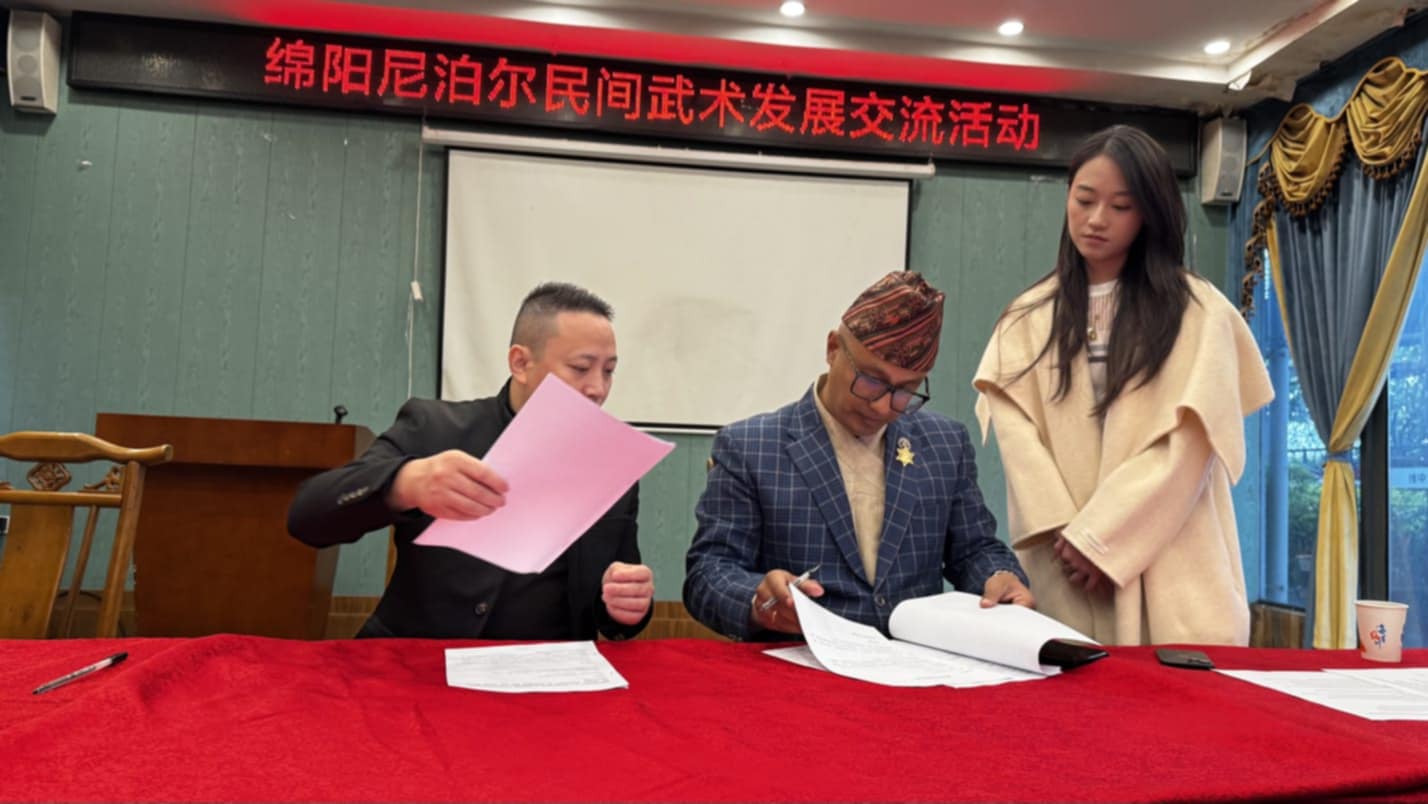 सम्झौता पत्रमा मार्सल आर्ट अर्गनाइजेसन नेपालका अध्यक्ष राजिव महर्जन र सिचुवान प्रान्त उसु संघका कार्यकारी निर्देशक तथा मिनयाँङ उसु संघका महासचिव ली किङ (Li Qing) ले हस्ताक्षर गरेका छन्। सम्झौता कार्यक्रममा मिनयाँङ नगरपालिकाका उपमेयर ली सिन् (Li Xin), मियाँङ उसु संघका उपाध्यक्ष द्वय लान लिमिन (Lan Limin) र जियाङ हुआ (Jiang Hua) उपस्थित थिए।