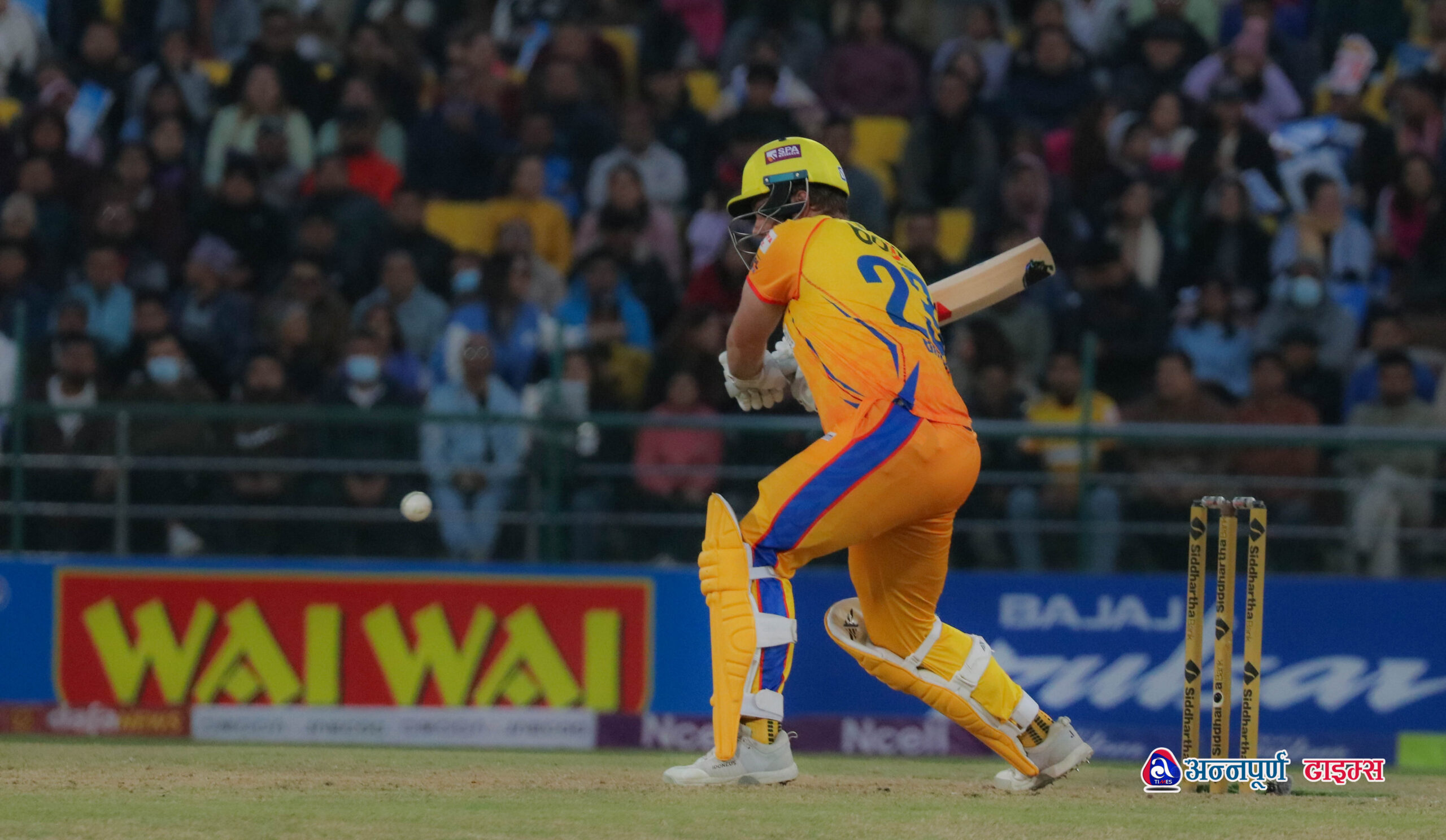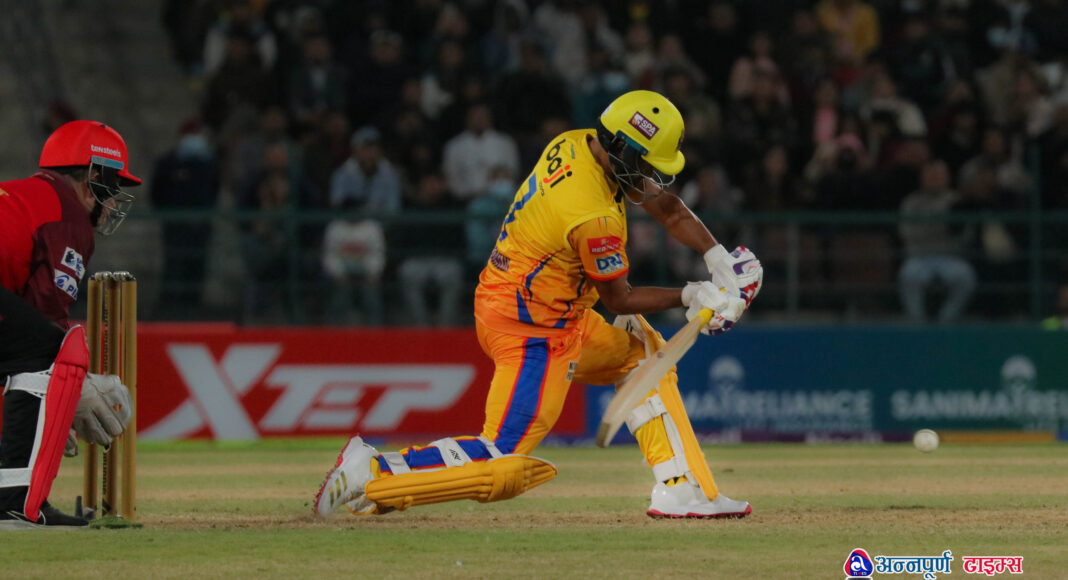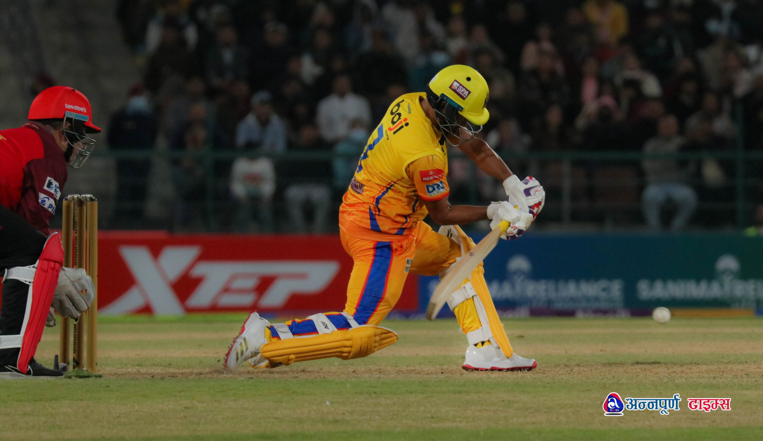 उनले २९ बलको सामना गरी तीन छक्का र पाँच चौकाको मद्दतले अर्धशतक पूरा गरेका हुन् ।जारी सिजनको एनपीएलमा अर्धशतक प्रहार गर्ने उनी सुदूरपश्चिमका दोस्रा खेलाडी हुन् ।