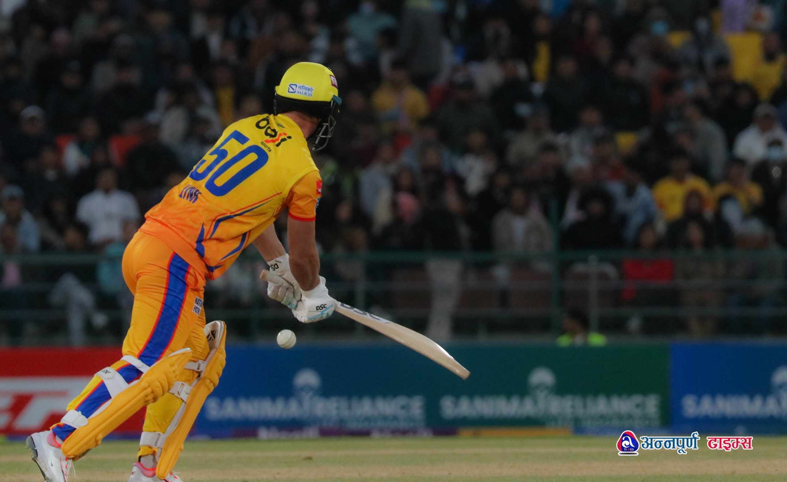 काठमाडौं – नेपाल प्रीमियर लिग (एनपिएल) सिजन–२ मा सुदूरपश्चिम रोयल्सले पोखरा एभेन्जर्सलाई १९४ रनको विशाल लक्ष्य दिएको छ ।