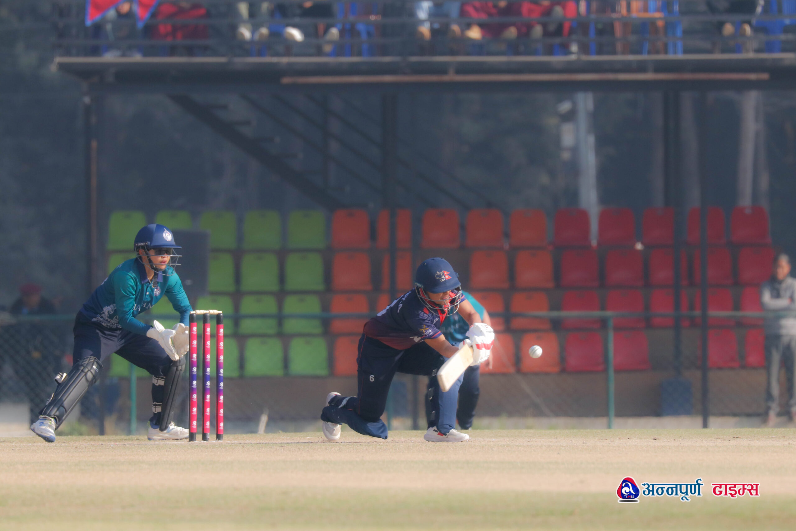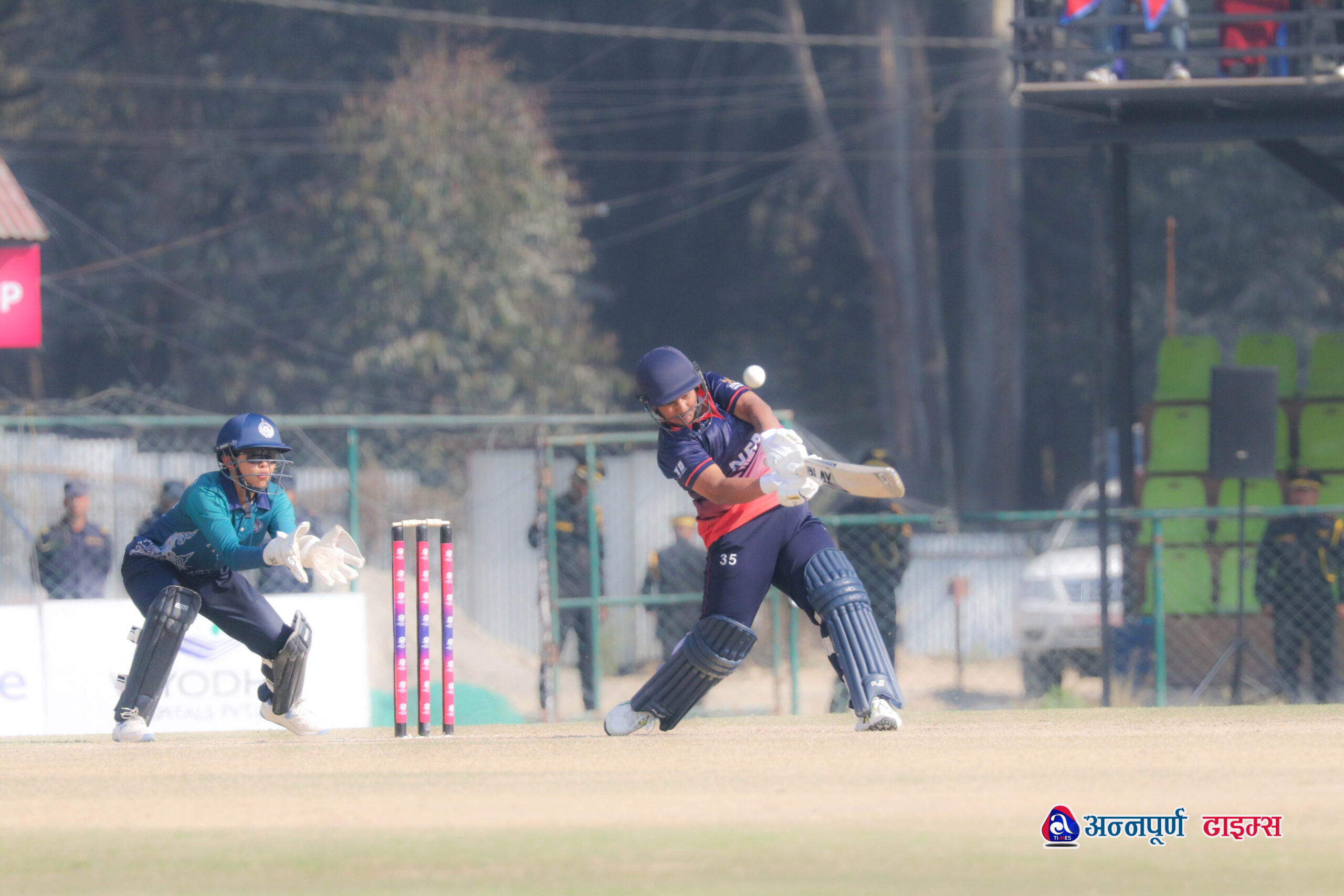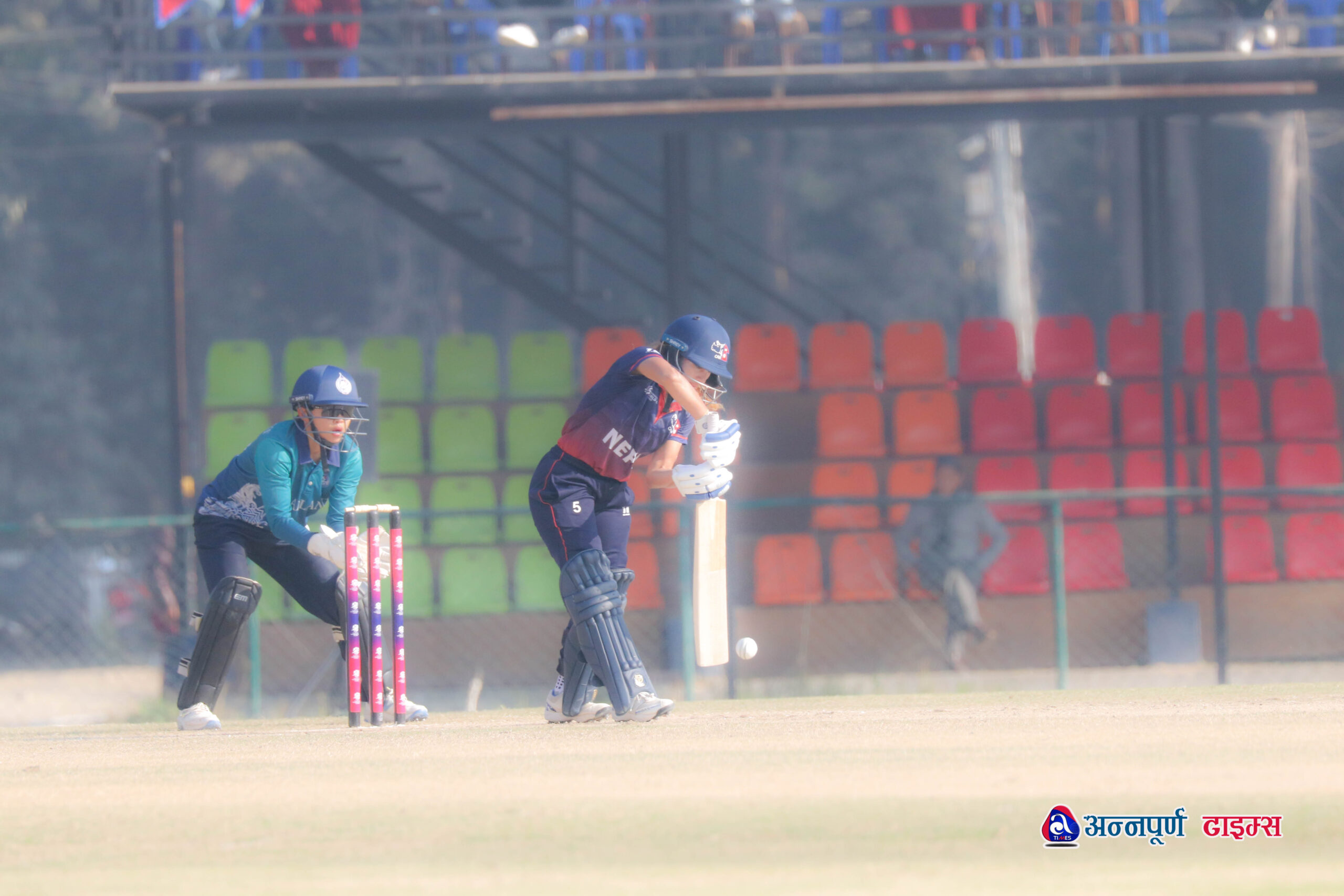 १० बलमा २ छक्का र १ चौका प्रहार गरेकी रुविना क्षेत्री १७ रन बनाउँदै पेभेलियन फर्किइन्। पुजा महतो १२ रन बनाउँदा क्याच आउट भईन्। इन्दु बर्मा ६ रनमा क्याच आउट भइन्। कविता कुवँर २ रनमा रनआउट हुन पुगिन्। सीता रानामगर शून्य रनमा नै आउट भइन्।