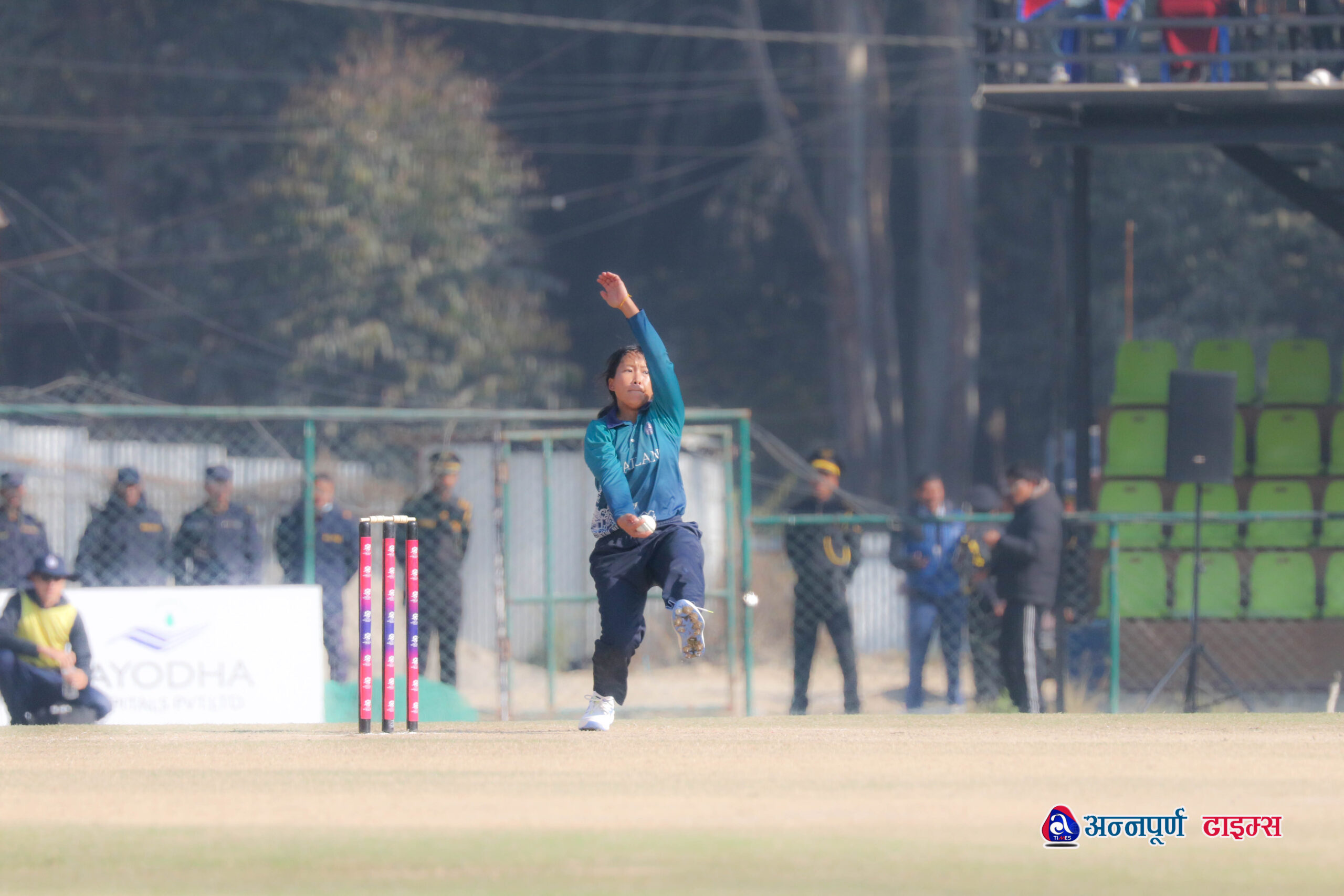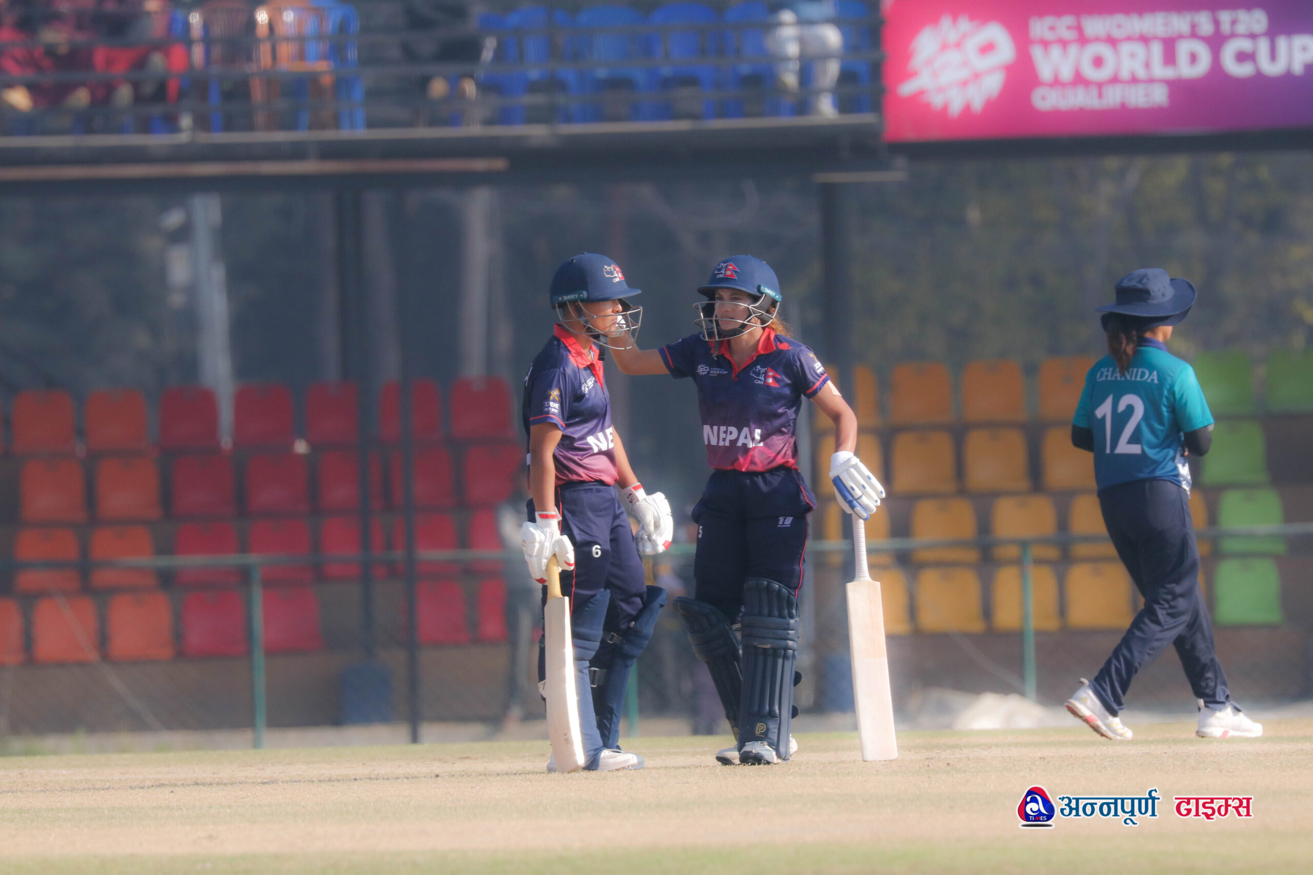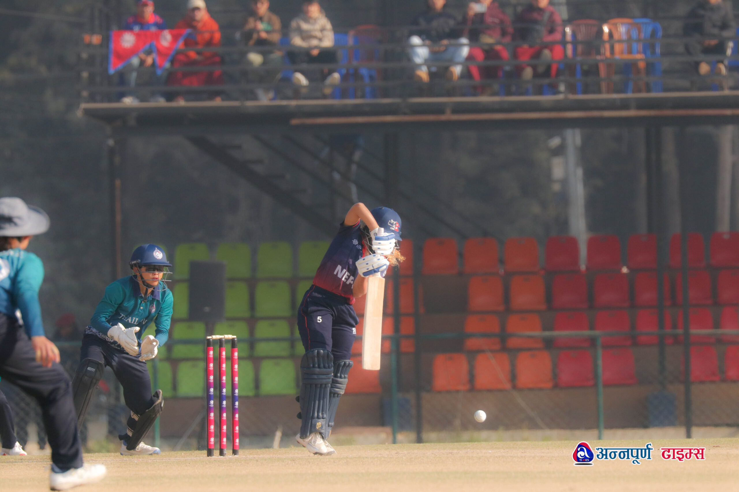 १० बलमा २ छक्का र १ चौका प्रहार गरेकी रुविना क्षेत्री १७ रन बनाउँदै पेभेलियन फर्किइन्। पुजा महतो १२ रन बनाउँदा क्याच आउट भईन्। इन्दु बर्मा ६ रनमा क्याच आउट भइन्। कविता कुवँर २ रनमा रनआउट हुन पुगिन्। सीता रानामगर शून्य रनमा नै आउट भइन्।