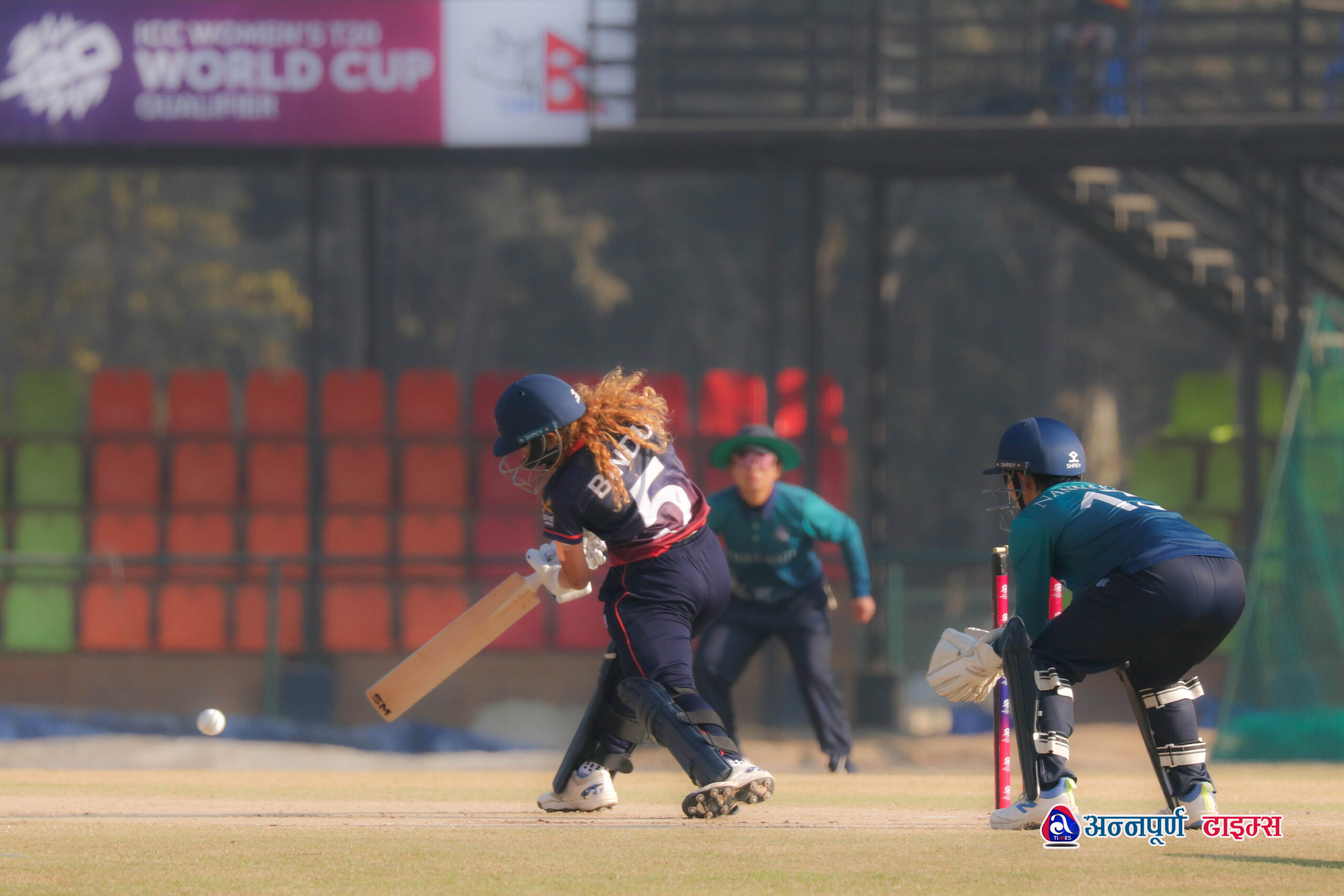 पावर प्लेमा उत्कृष्ट सुरुवात गरेको नेपाली टोली मध्यक्रममा सम्हालिन सकेन। नेपालले ५.४ ओभरमा ५२ रन बनाएको थियो। ओपनर सम्झना खड्का ११ बलमा ६ चौका सहयोगमा २६ रन बनाउँदा क्याच आउट हुन पुगिन्।