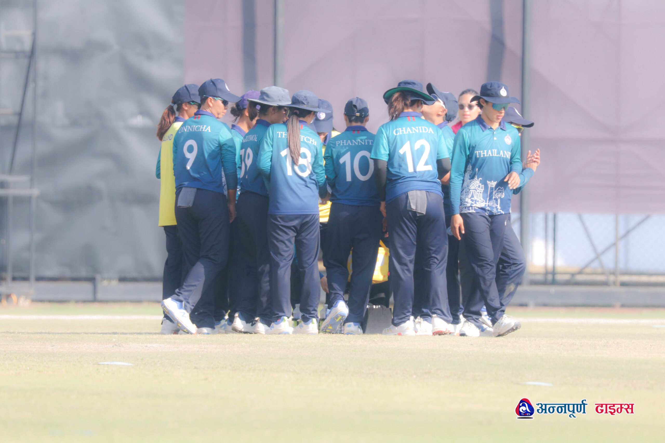थाइल्यान्डका लागि नाथाकानले सर्वाधिक ५७ रनको योगदान दिईन्। नन्नापाटले ३२ र अविसराले २८ रन बनाईन्। त्यसअघि कीर्तिपुरस्थित त्रिवि क्रिकेट मैदानमा थाइल्यान्डले टस जितेर बलिङ रोजेपछि ब्याटिङ गरेको घरेलु टोली निर्धारित २० ओभरमा १ सय २२ रन बनाउँदा अलआउट भयो।