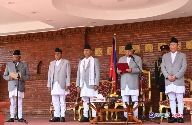 काठमाडौ – राष्ट्रपति रामचन्द्र पौडेलसमक्ष प्रतिनिधि सभाका नवनिर्वाचित ज्येष्ठ सदस्य अर्जुननरसिंह केसीले आज आफ्नो पद तथा गोपनीयताको शपथ लिएका छन् ।