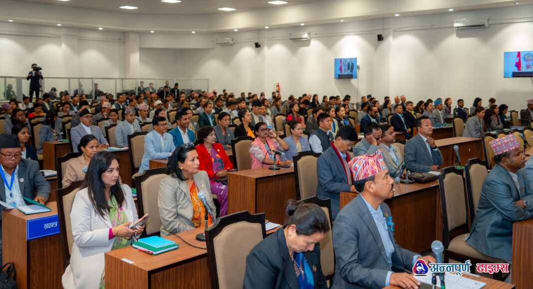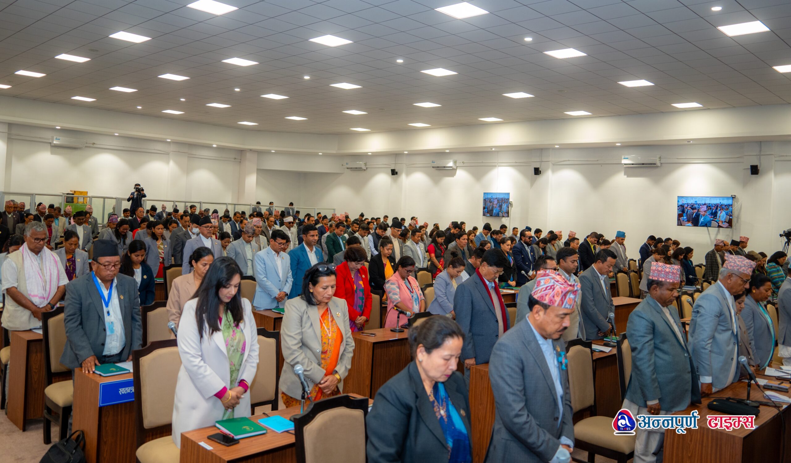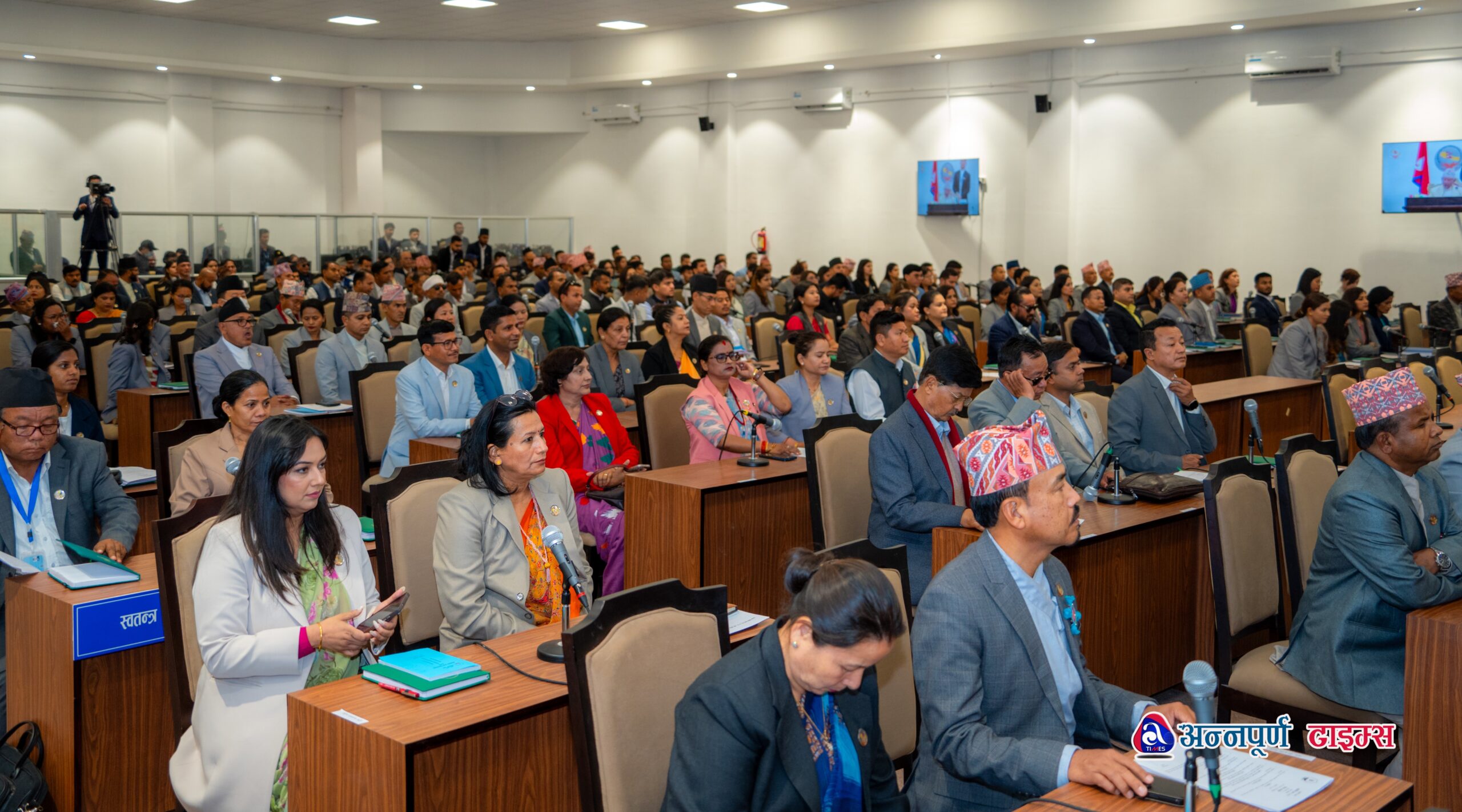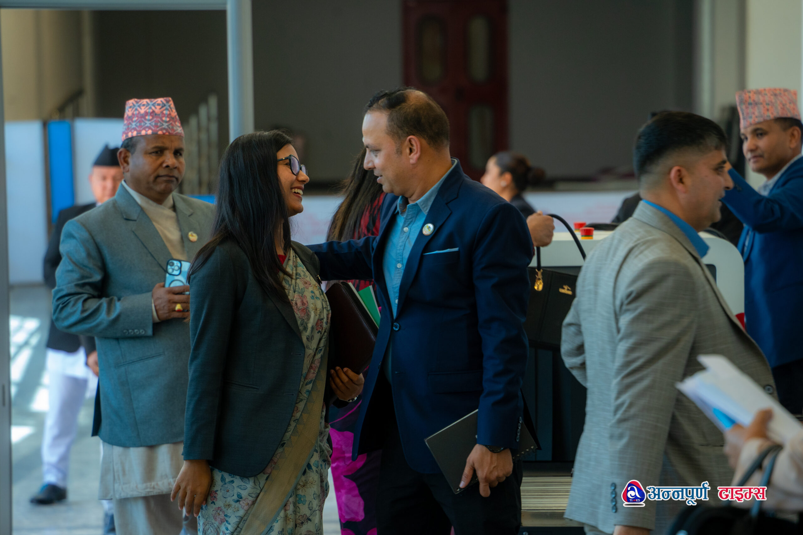 प्रतिनिधि सभाको पहिलो बैठक सिंहदरबारस्थित निर्माणाधीय संघीय संसद् भवनको बहुउद्देश्यीय हलमा बसेको छ ।