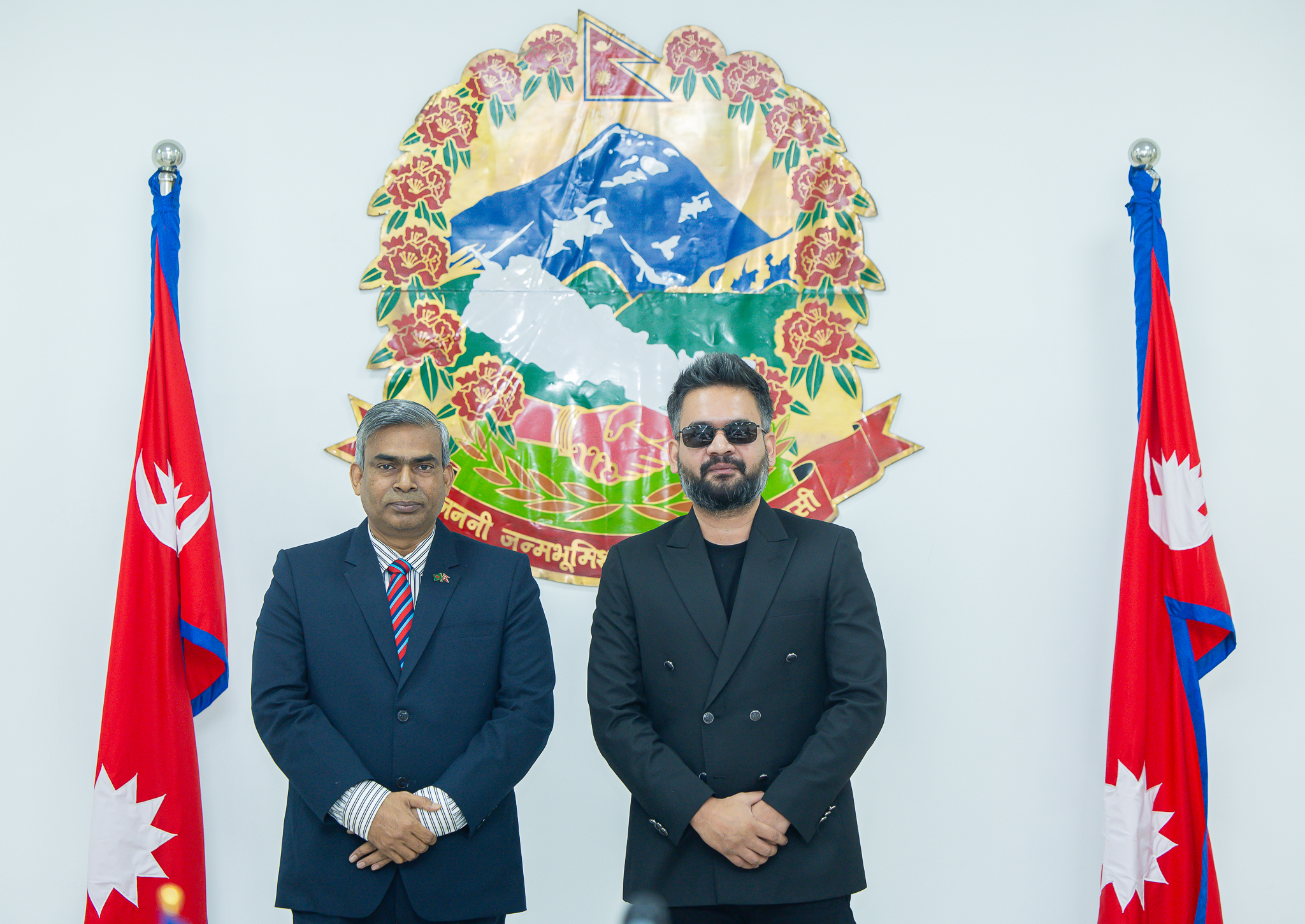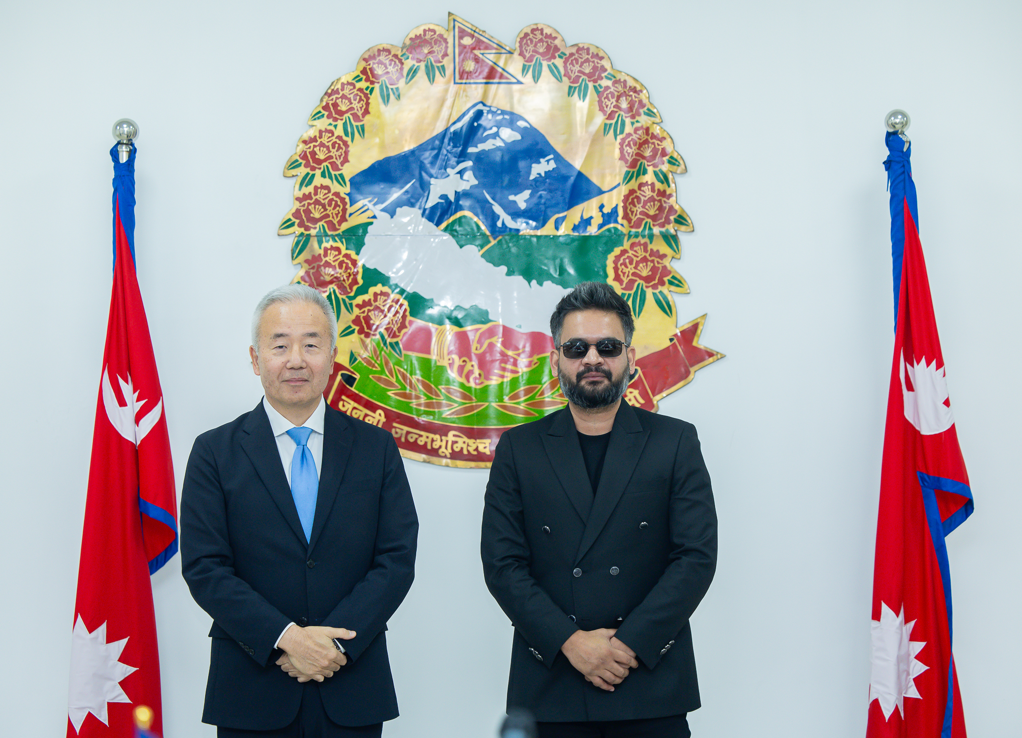 सो अवसरमा परराष्ट्रमन्त्री शिशिर खनाल, प्रधानमन्त्रीका राजनीतिक सल्लाहकार असीम शाह, मुख्यसचिव सुमनराज अर्याल, परराष्ट्र सचिव अमृतबहादुर राई र अन्य सरकारी अधिकारीहरूको पनि उपस्थिति रहेको थियो। Photo : PMO NEPAL