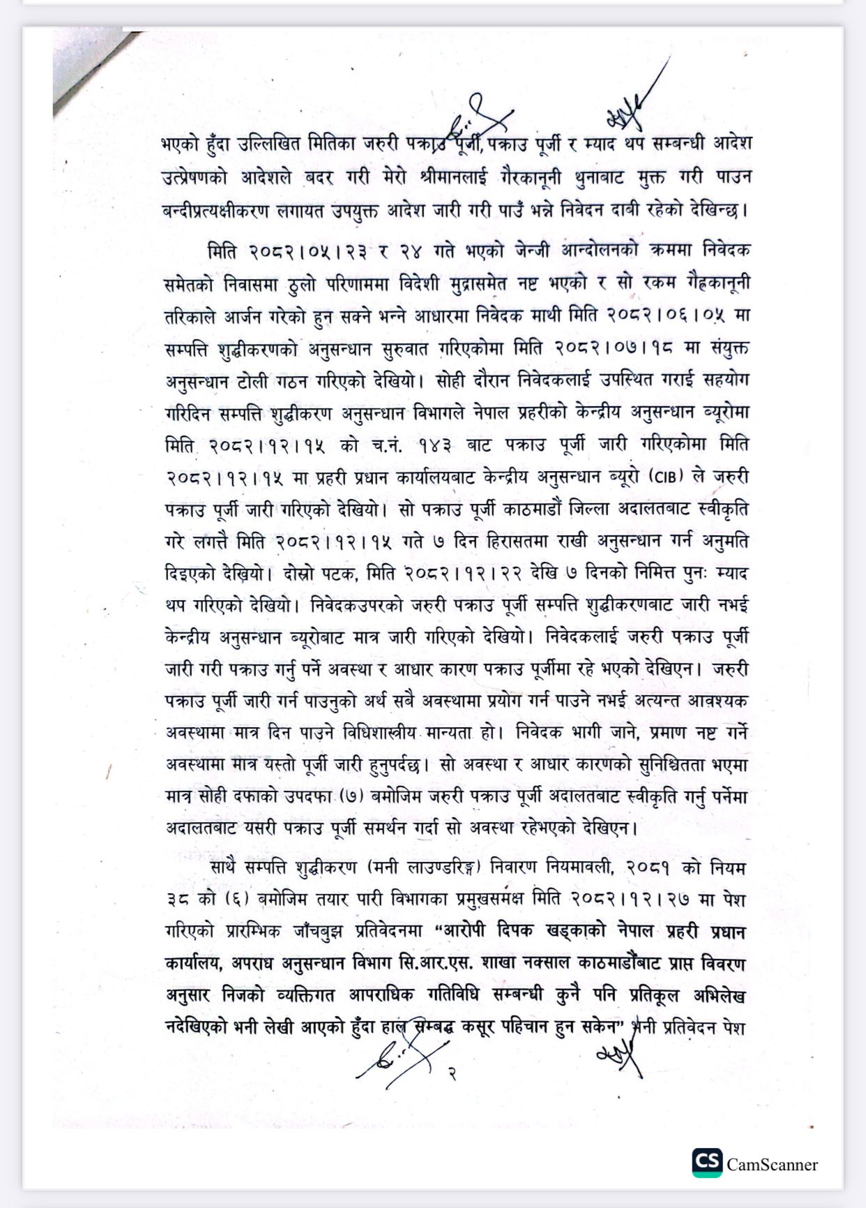 खड्कालाई सम्पत्ति शुद्धीकरणसम्बन्धी कसुरमा अनुसन्धानका लागि सिआइबीले पक्राउ गरेपछि उनकी श्रीमती विनिता थापाले बन्दी प्रत्यक्षीकरणको रिट दायर गरेकी थिइन्।