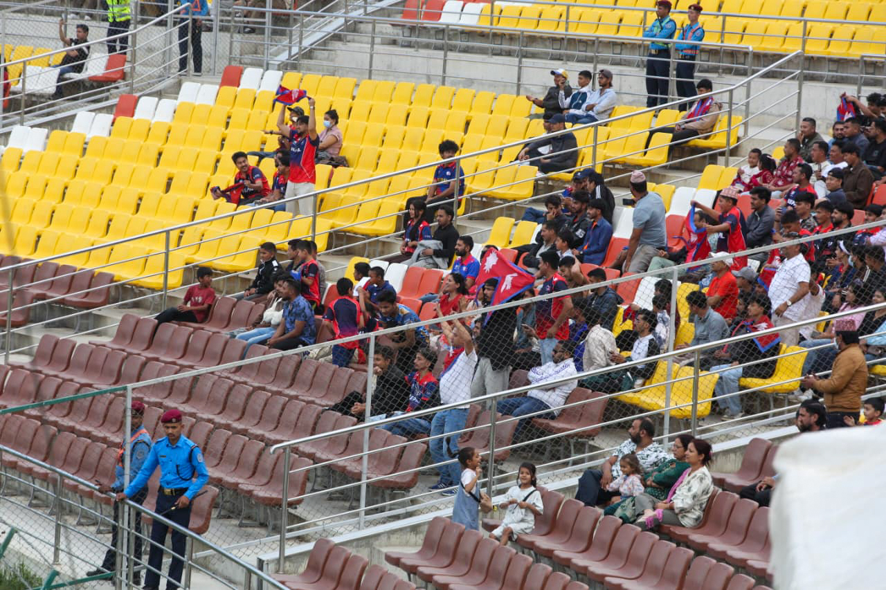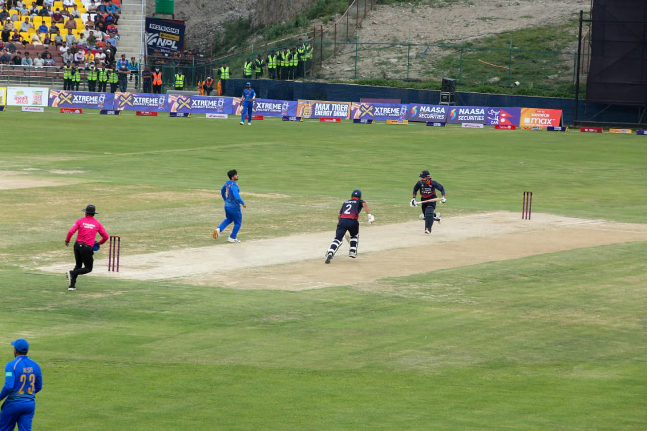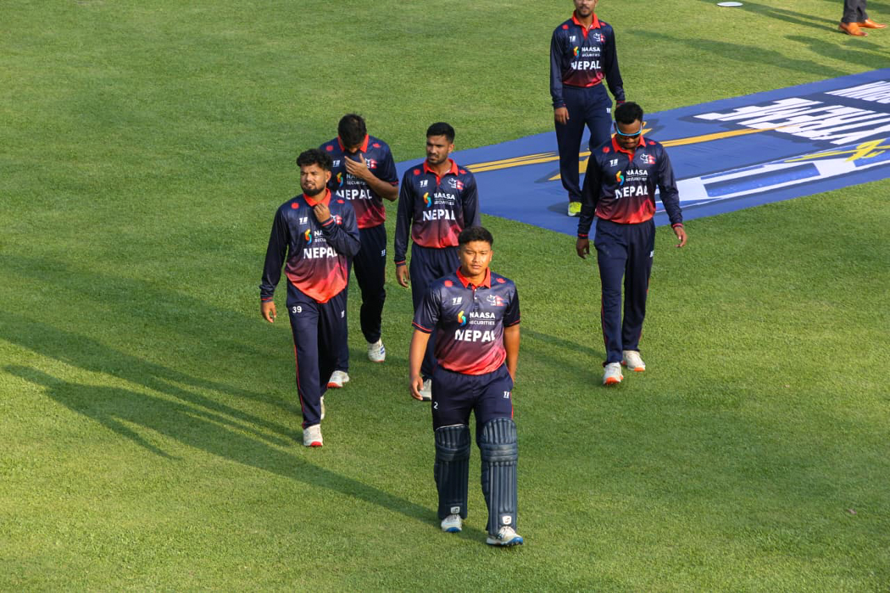 काठमाडौं । कीर्तिपुरस्थित त्रिवि क्रिकेट मैदानमा नेपाल र युएइबीच पहिलो टी–२० खेल रोकिएको छ । त्रिवि क्रिकेटमा १९औं ओभरको खेल चलिरहँदा वर्षा भएपछि खेल रोकिएको हो ।