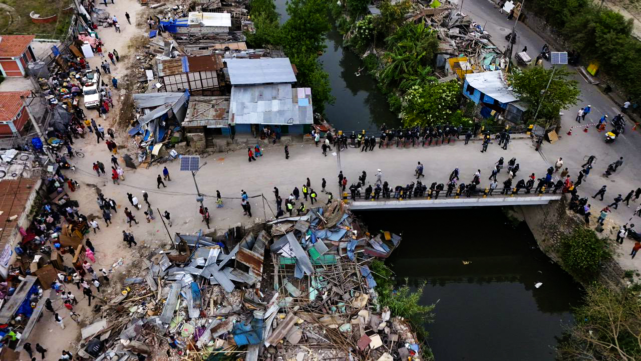 नेपाल सरकारको निर्देशनअनुसार अतिक्रमण गरी निर्माण गरिएका संरचना तथा बस्ती भत्काउने अभियान आज बिहानदेखि तीव्र बनाइएको हो । तस्बिर :टार्जन लिम्बु,नेपाल न्यूज बैंक
