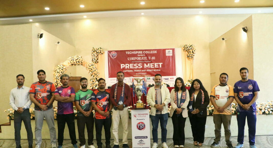 काठमाडौँ : काठमाडौँ स्पोर्ट्स एन्ड इभेन्ट्स प्रा.लि.द्वारा आयोजना हुन लागेको कर्पोरेट टी–१० लिग को पत्रकार सम्मेलन आज अनमोल बैंक्वेटमा भव्य रूपमा सम्पन्न भएको छ। पत्रकार सम्मेलनमार्फत आगामी वैशाख १३ देखि १६ गतेसम्म तल्लो मुलपानी क्रिकेट मैदानमा हुने प्रतियोगिताको सम्पूर्ण तयारी पूरा भएको जानकारी दिइएको छ। कर्पोरेट टी–१० लिगमा कर्पोरेट क्षेत्रका प्रतिष्ठित ६ टोलीहरू: एनसेल, क्लाउडफ्याक्ट्री, सिप्रदी, आईसीएफसी फाइनान्स, सुबिसु र टेक्स्पायर कलेजको सहभागिता रहनेछ ।